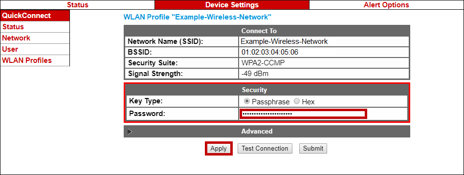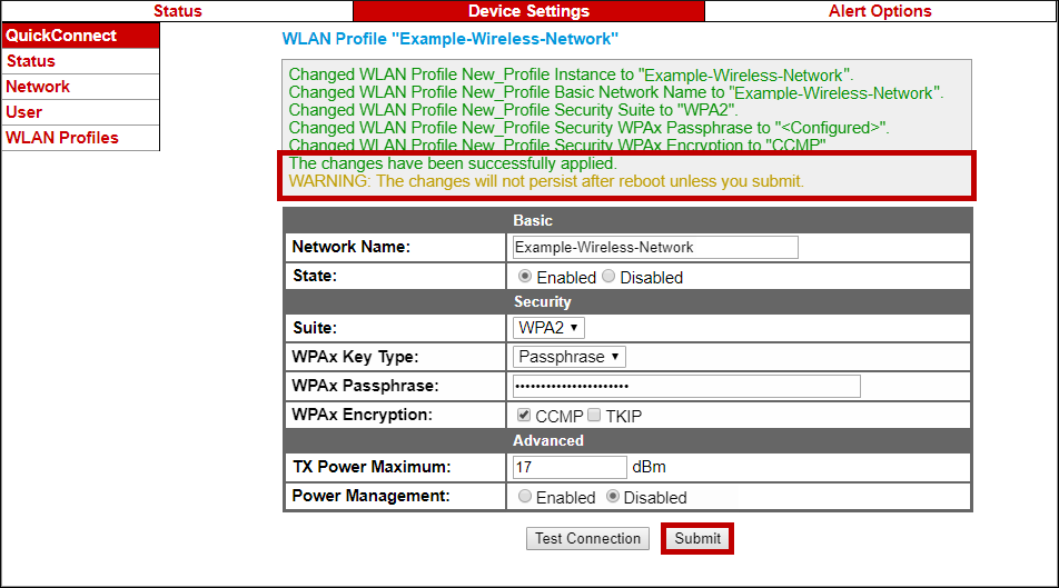– Then select Submit to commit your changes to the device.