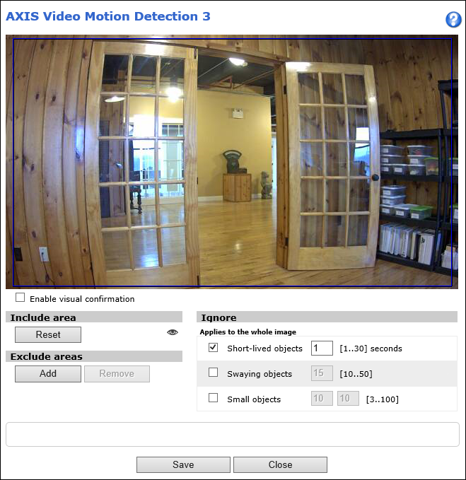 icon in your camera’s web interface for information about the settings that are available. You may also find the Video Motion Detection manual on Axis’ website here: Axis Video Motion Detection (Axis website).
