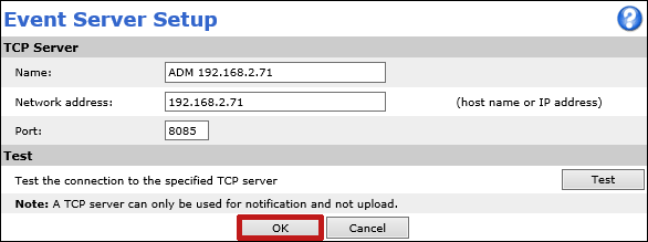 – In Name, enter a name for your event server. In our example, we’re entering ‘ADM 192.168.2.71.’