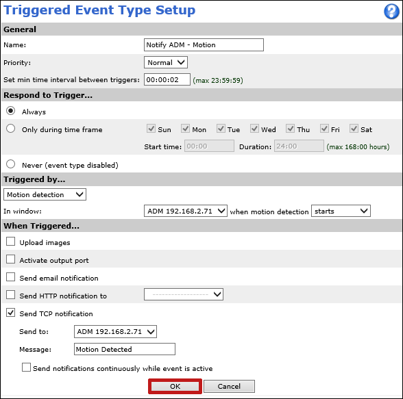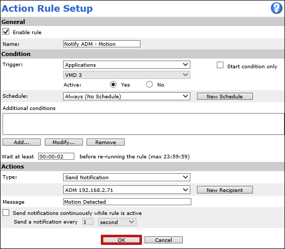 If you’re using built-in Motion Detection, you must configure a Motion Detection window in order to later set up your Action Rule or Event Type.