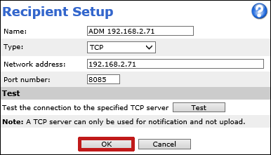 – In Name, enter a name for your recipient. In our example, we’re entering ‘ADM 192.168.2.71.’