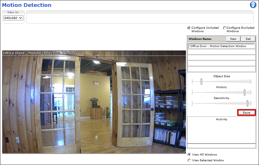 3. In the Motion Detection window, leave Configure Included Windows selected, which is the default.