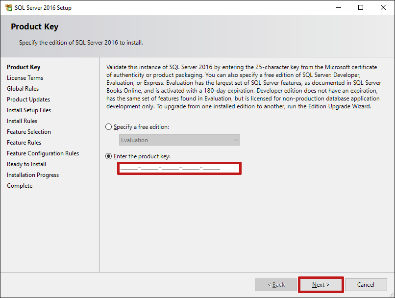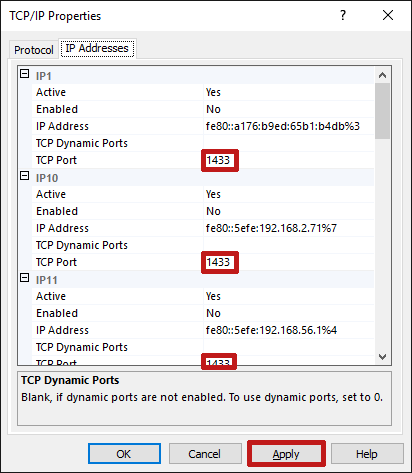 d. In Database Port, enter your SQL Server database port. The default SQL Server port is 1433, which is what we retained in our example.