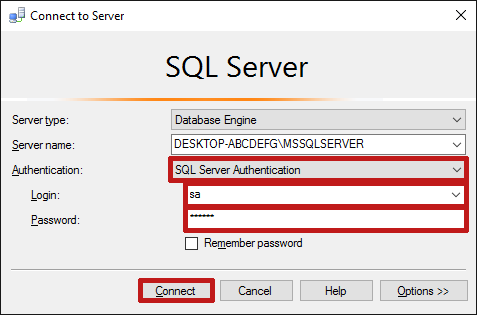 b. If Device ManageR and your SQL Server are installed on the same computer, leave “localhost” in Host Name or IP Address, as we have in our example. Otherwise, enter your SQL Server’s hostname or IP address.