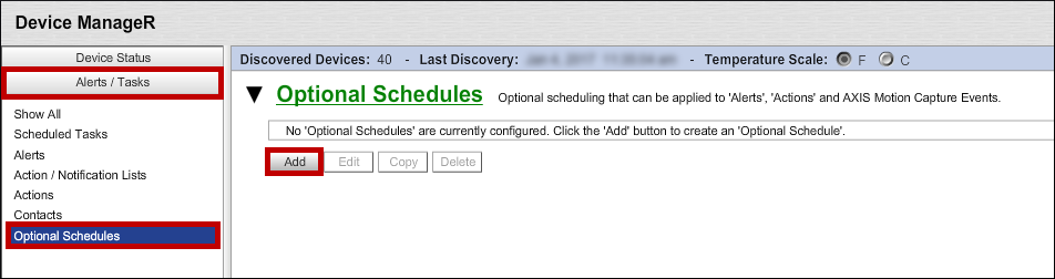 1. In the Alerts / Tasks menu, select Optional Schedules.