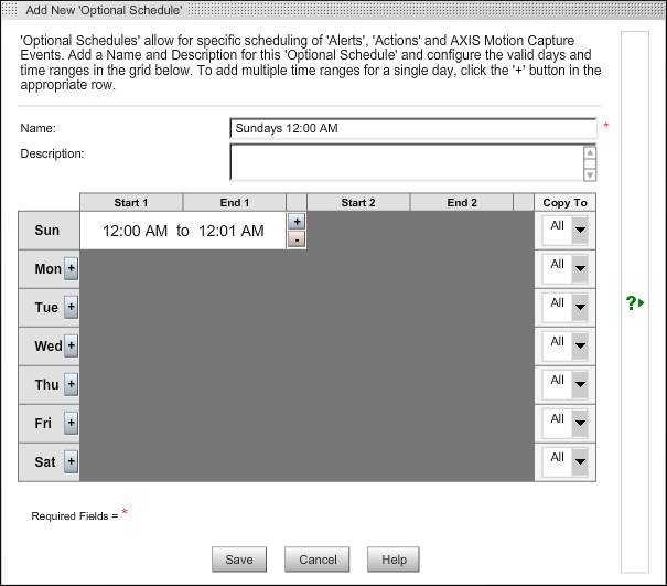 3. In the Add New ‘Optional Schedule’ window, configure and save your schedule. (For instructions on configuring Optional Schedules, please see this FAQ: How To Configure Schedules In Device ManageR.)
