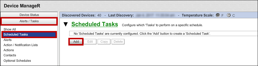 1. In the Alerts / Tasks menu, select Scheduled Tasks.