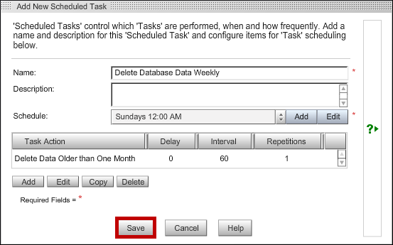 10. You will return to the Add New Scheduled Task window. Select Save to save your Scheduled Task.