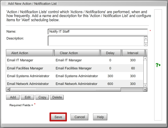 – In Name, enter a name for your Action / Notification List. In our example, we’re calling our list ‘Notify IT Staff.’