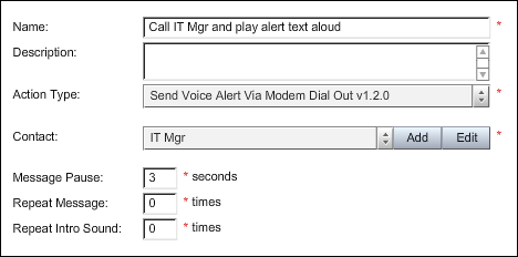 – In Action Type, select Send Voice Alert Via Modem Dial Out.