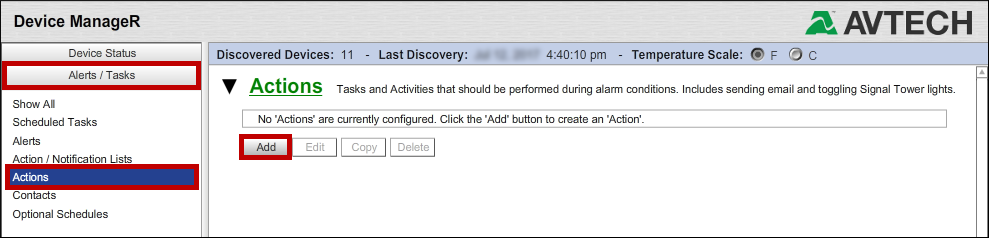 You may now associate this action with an Action / Notification List. Please see this FAQ for more information: How To Configure Action / Notification Lists In Device ManageR.