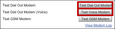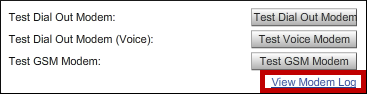 – Select Test Dial Out Modem to test text messaging through a TAP service or dial tones through direct dial.