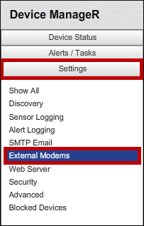 3. In the Settings menu, select External Modems.