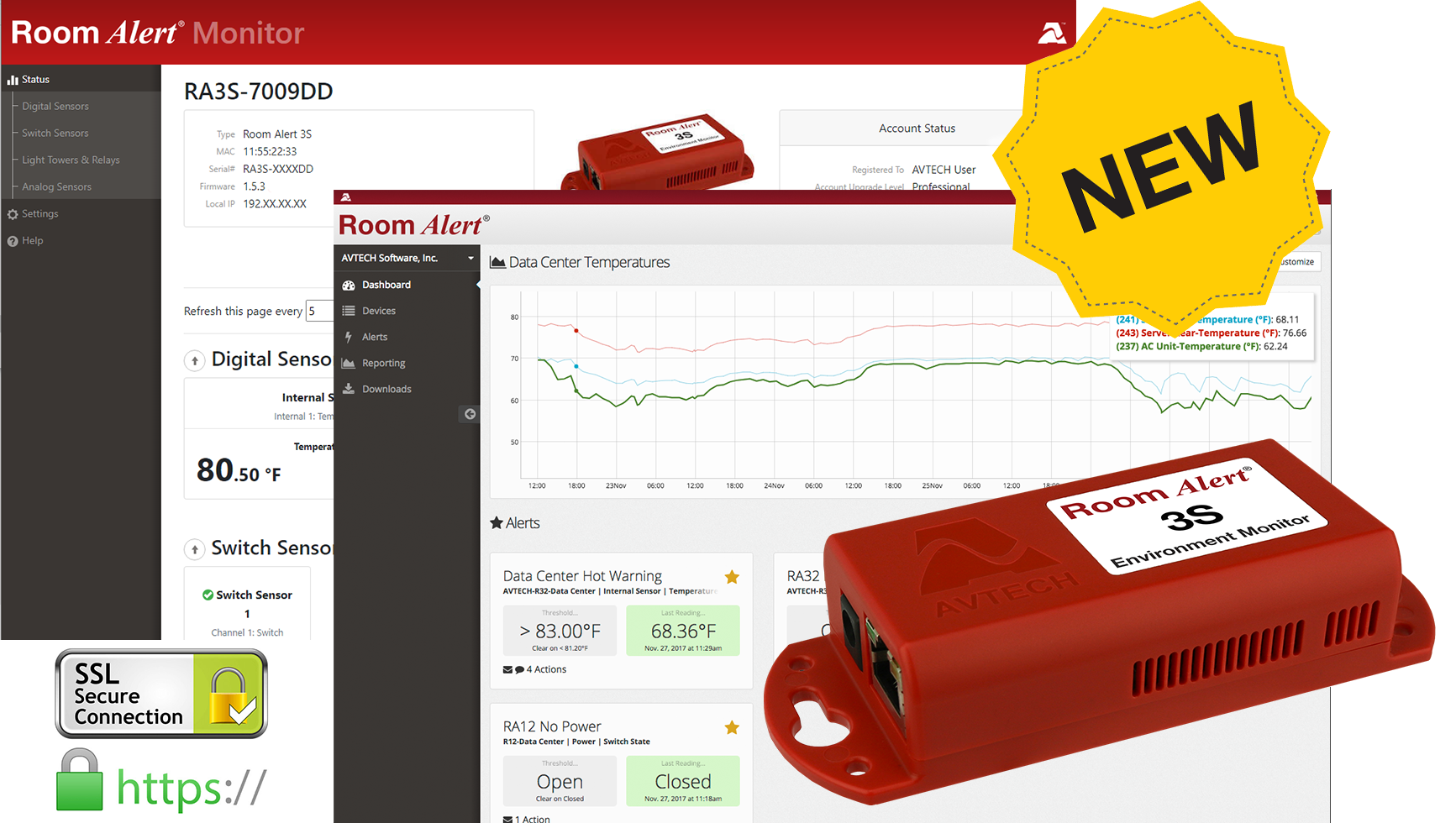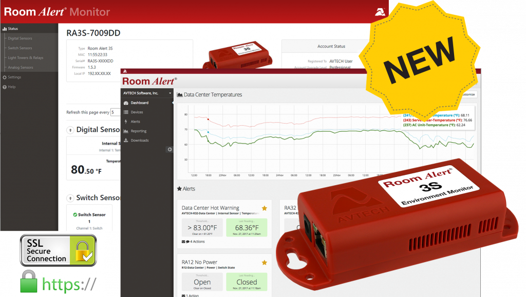 The Room Alert 3S is the newest addition to AVTECH’s Room Alert PRO line of secure proactive environment monitors