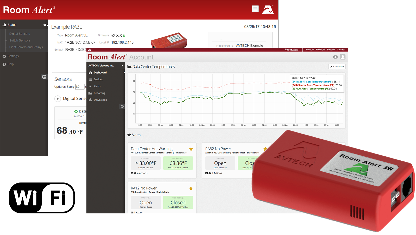 August 16, 2018 Warren, RI – AVTECH Software (AVTECH) has announced the release of new firmware for their Room Alert 3 Wi-Fi monitor. Installing the firmware instantly upgrades the device to 2.0 status, providing on-board alerting, increased security, enhanced wireless network reach and stability, and more.