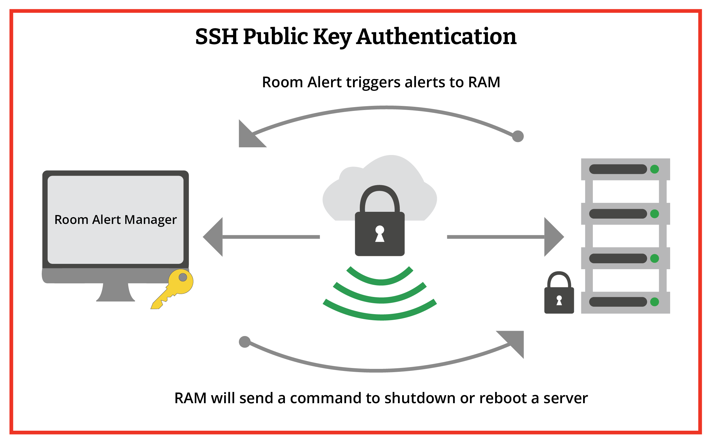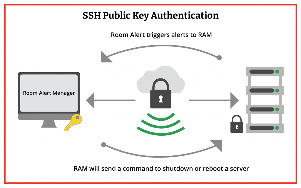 We always take a firm shields-up approach to keep our customers’ data as safe and secure as possible. This holds true for Server Command Actions in Room Alert Manager, which are secured with SSH Public Key Authorization. Secure Socket Shell (SSH) is a cryptographic protocol, primarily used to enable secure access to remote servers and devices. Public key cryptography serves as the mechanism for mutual authentication between the server and the client and establishes an encrypted channel of communication between them. Room Alert Manager includes support for multiple SSH key algorithms, including RSA, Ed25519 & ECDSA.