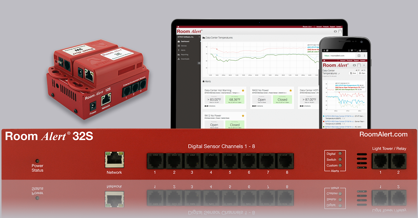 If you have any questions about environment monitoring with Room Alert, please contact us today through email at Sales@AVTECH.com, through our online Live Chat service, or via phone 401.628.1600. If you are interested in becoming an authorized AVTECH reseller, please email us at Resellers@AVTECH.com or click here for more information.