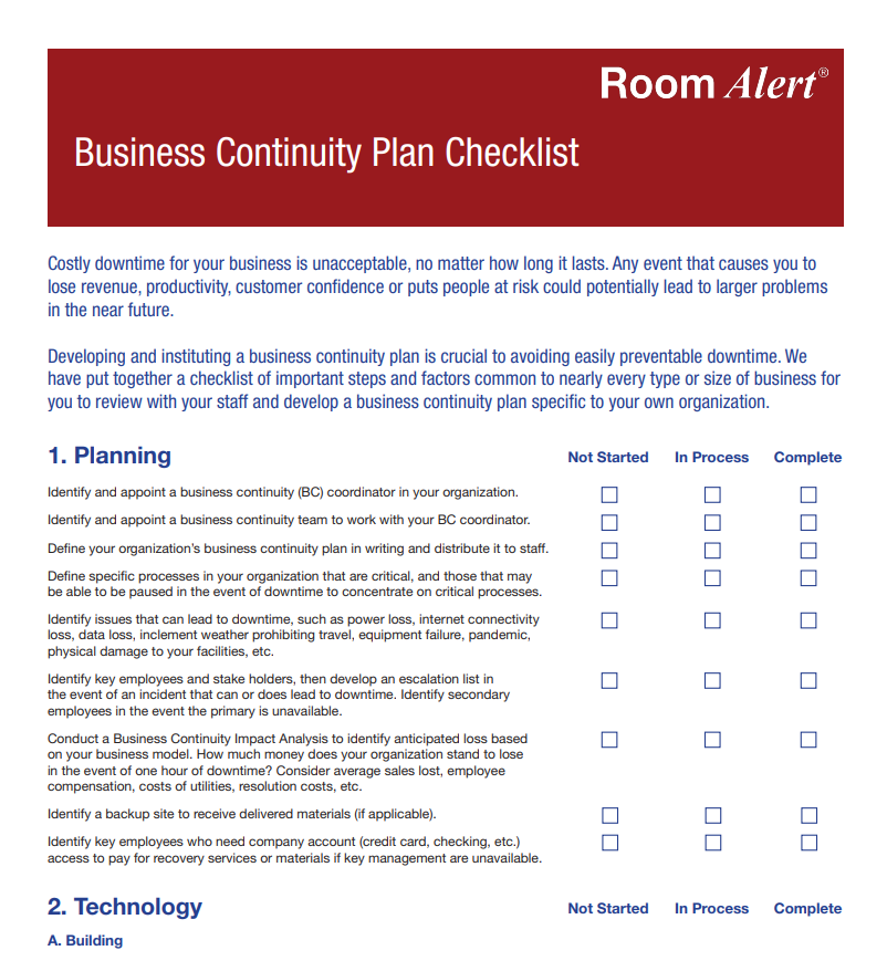 If there’s one thing that 2020 has taught all of us, it’s the importance of planning for the unexpected. Room Alert can help protect your organization from the 30% of downtime caused by environment conditions, and our Business Continuity Checklist, Downtime Calculator and other tools can help you understand and mitigate the causes of downtime within your organization. With Room Alert now installed in 187 countries, and in business for over 32 years, you can trust AVTECH to help protect your organization from damage and downtime in 2021 and beyond.
