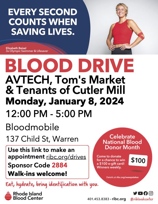 - COMMUNITY INVOLVEMENT: We started the new year off right by hosting a blood drive with the Rhode Island Blood Center on January 8th.