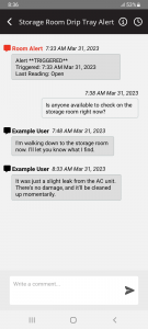 Another feature that is exclusively available via the Room Alert app is real-time alert conversations. Our desire to always continue innovating and improving led us to spend extensive engineering effort developing real-time alert conversations. We identified the opportunity to strengthen the existing commenting on alerts feature and elevate it to conversations. Previously with commenting on alerts, users could comment on their configured alerts as a way to communicate with their team and troubleshoot collectively to prevent and reduce the extent of costly outages. This feature is effective at supporting facilities management, especially if your facility is short-staffed or if you’re managing remotely. However, real-time alert conversations take this to the next level.