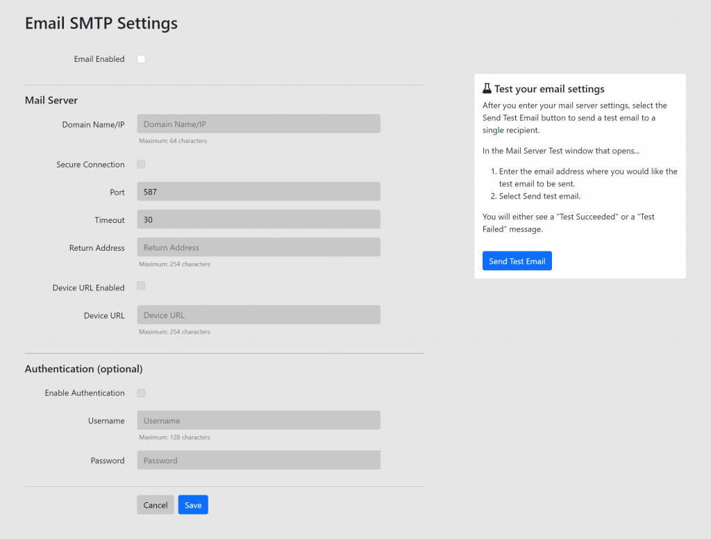 After your unit has rebooted, select the Send Test Email button to send a test email to all of the recipients in the Email Recipients field.